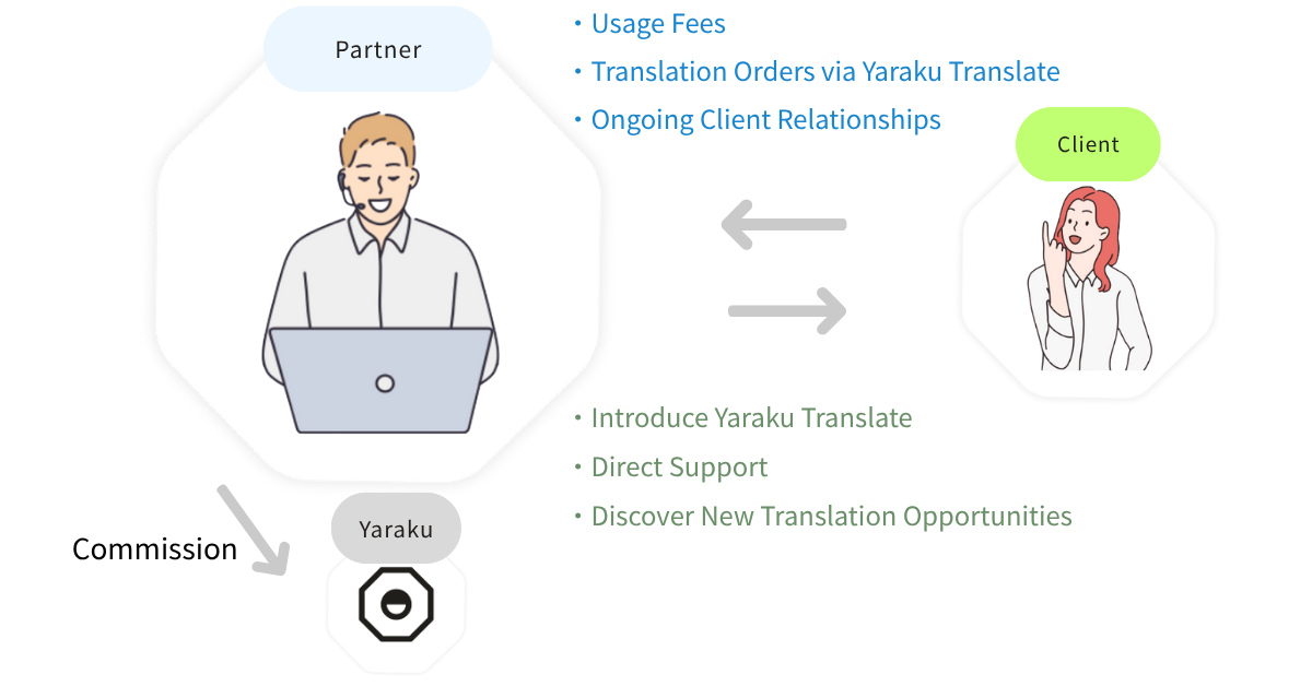 Introduce Yaraku Translate to your clients, earn steady revenue, win new projects, and strengthen long-term customer relationships.