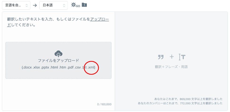 ファイル翻訳に、新たにXMLが追加されます。これで、WORD, EXCEL, PowerPoint, HTML, HTM, PDF, CSV, TEXT, XMLの9つのファイル形式を翻訳できるようになります。