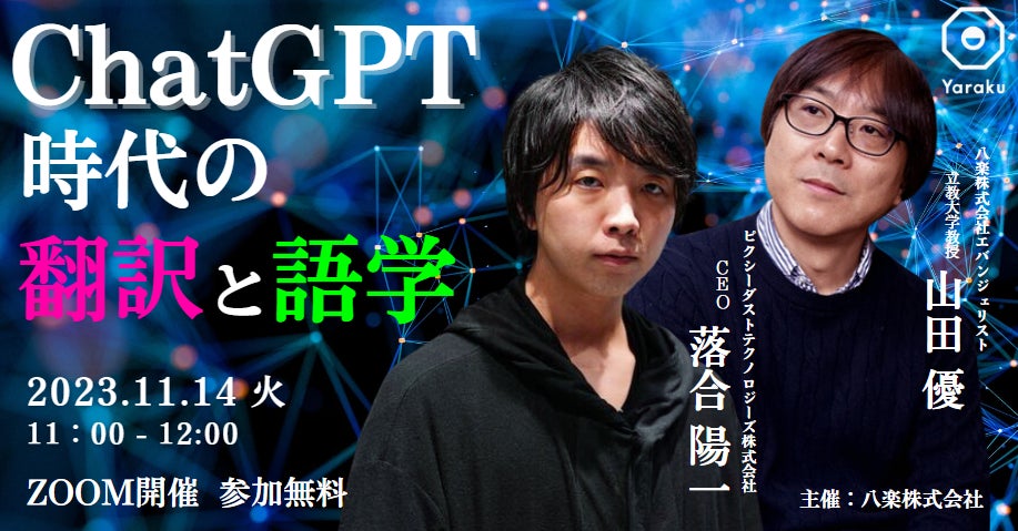 ピクシーダストテクノロジーズ代表の落合陽一氏と八楽のエバンジェリストであり、立教大学教授の山田優氏がChatGPT時代の翻訳と語学について意見を交わしました。