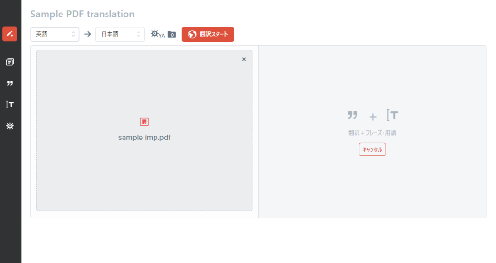 例えば、AI翻訳プラットフォーム「ヤラク翻訳」では、PDFファイルをドラッグ&ドロップするだけで、元のレイアウトを維持したまま翻訳を開始できます。これにより、一文ずつコピペする手間が不要になり、翻訳作業を劇的に効率化します。