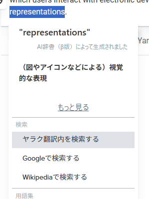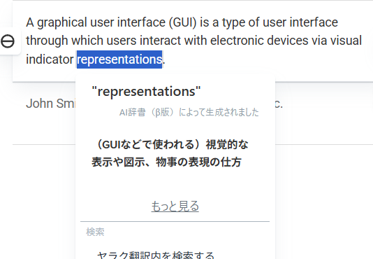 検索したい単語をハイライトするだけで、ポップアップに単語の意味が生成されます。