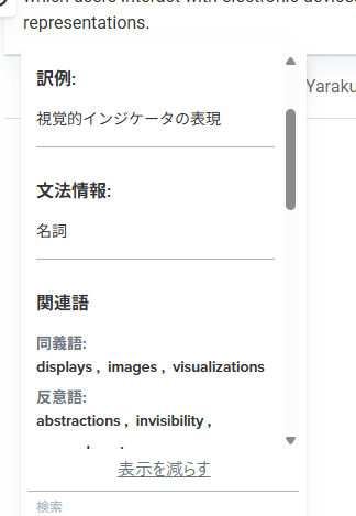 意味の下に表示される「もっと見る」をクリックすると、詳細が表示されます。